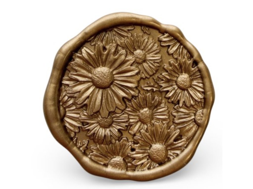 Pečeť na obálku oražená pečetní raznicí s motivem kopretin