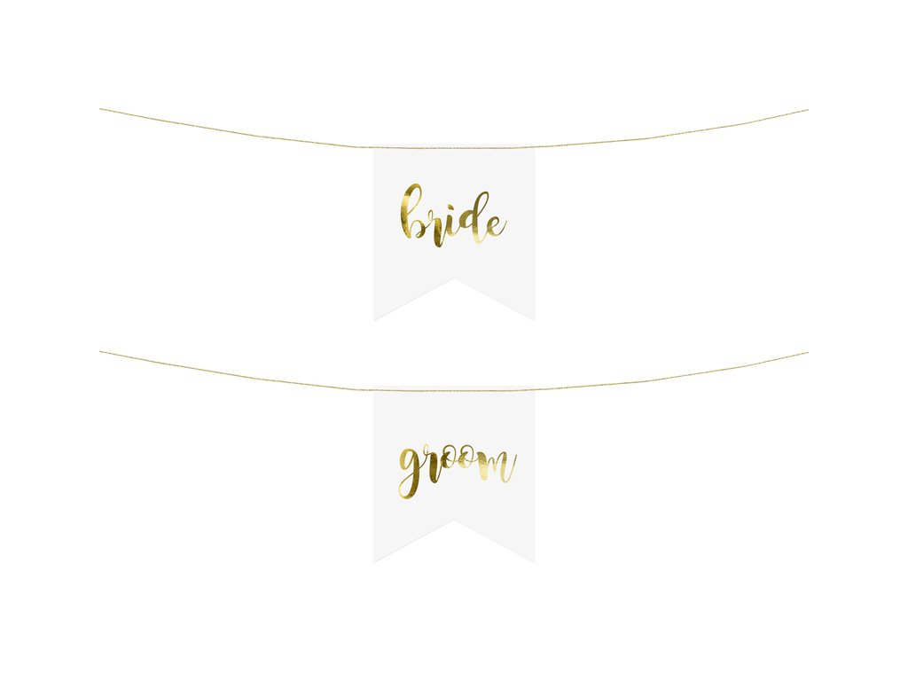 Girlanda se zlatým nápisem Mr. & Mrs.