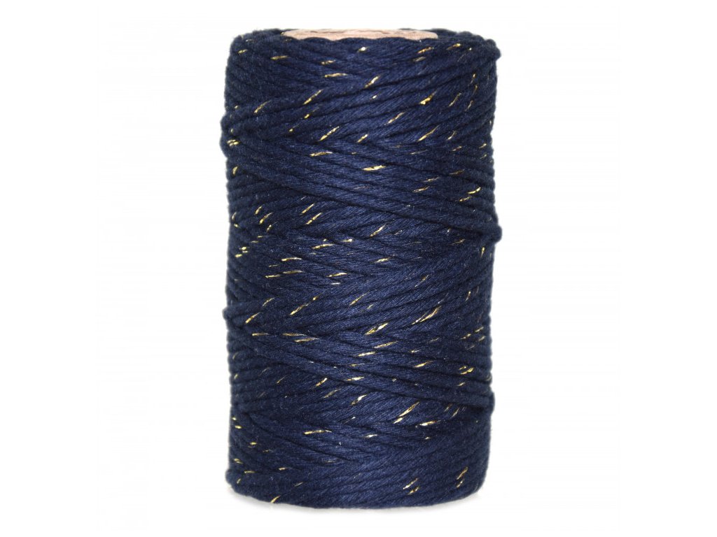 Macrame příze - Modrá - Zlatá - 2 mm, 60 m
